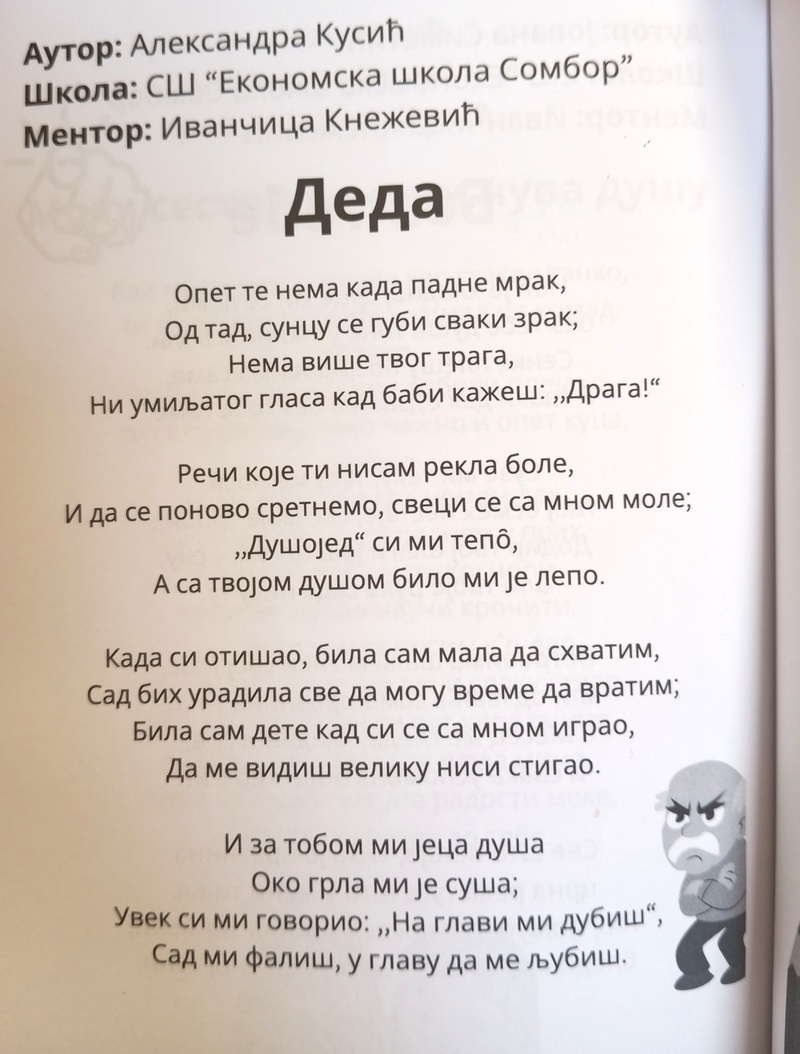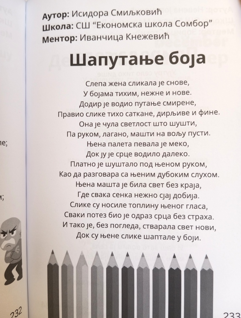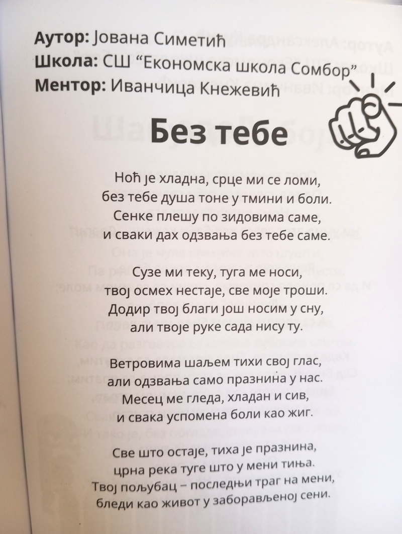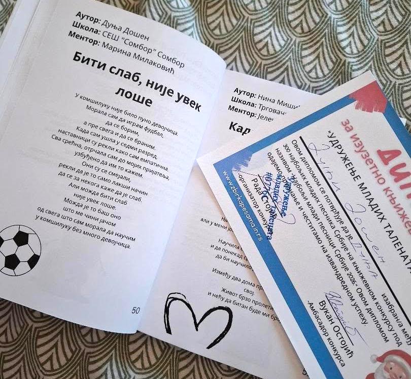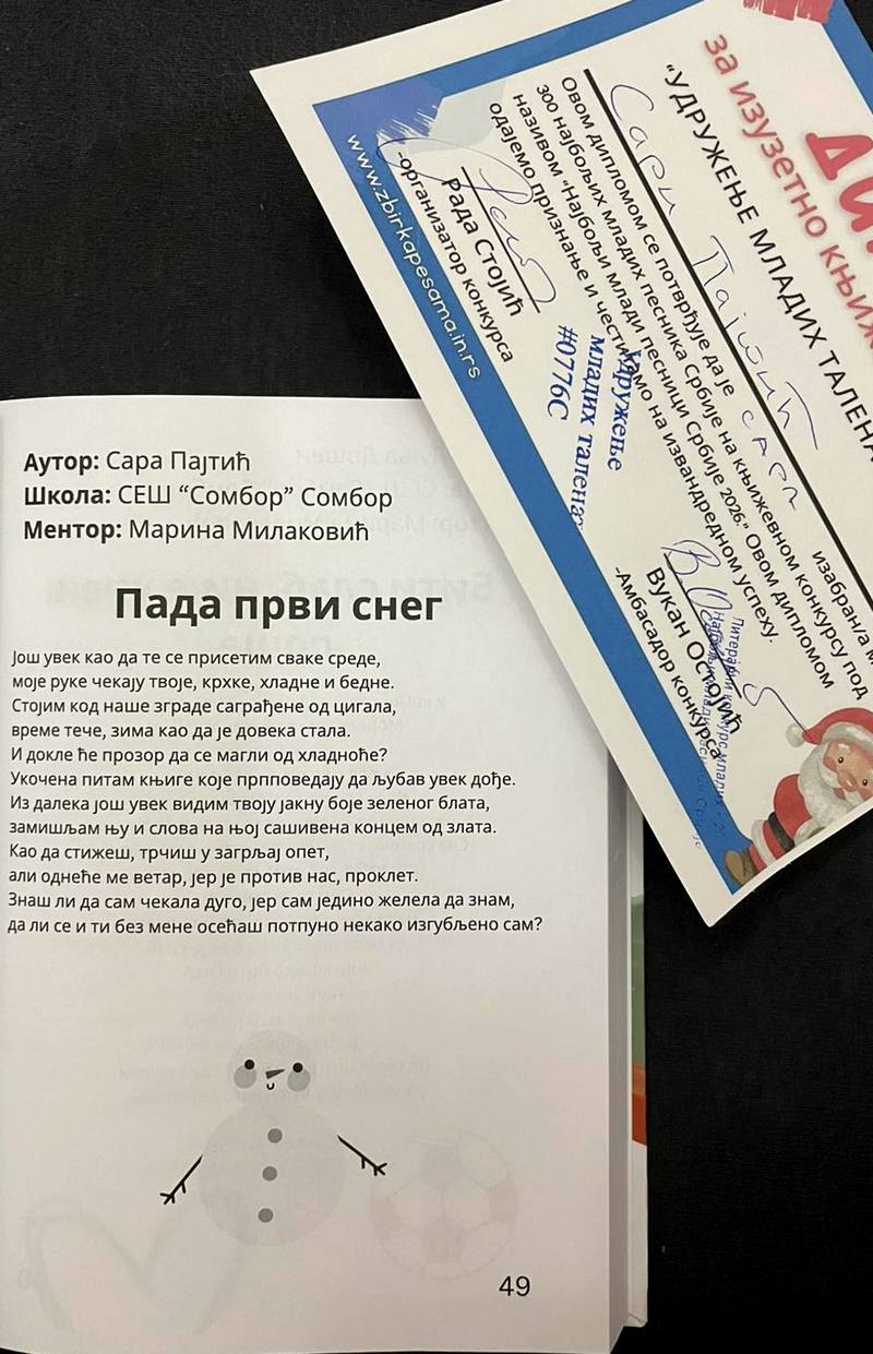 Ученици Средње економске школе Сомбор учествовали су на литерарном конкурсу „Најбољи млади песници Србије“ 2026. и остварили изузетан успех. Конкурс је расписало Удружење младих талената, а из наше школе објављено је пет ученичких радова.